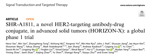 近日,豪门国际医药HER2 ADC创新药瑞康曲妥珠单抗(SHR-A1811)I期HORIZON-X研究(SHR-A1811-I-101)的长期随访结果正式发表于《自然》子刊、国际知名医学期刊《信号转导与靶向治疗》(Signal Transduction and Targeted Therapy,简称STTT,IF:52.7)[1]。
